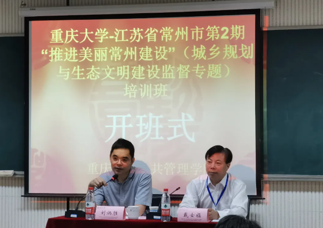 2021年5月10日上午,重庆大学-江苏省常州市第 2 期“推进美丽常州建设”(城乡规划与生态文明建设监督专题)培训班在重庆大学A区公共管理学院104室正式开班。此次培训由江苏省常州市人大常委会副主任戴士福带队,共计40余名常州市人大代表及相关工作人员参加学习。